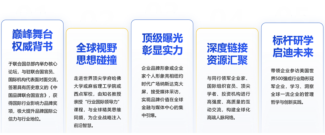 企业代表团参访著名学院、实验室或图书馆,感受顶级学术氛围。融入世界顶级学术殿堂,开展课程学习,深入探讨国际战略、科技创新与管理前沿,展现品牌的学习力与创新力,提升品牌文化内涵。